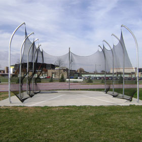 | Comes complete with net, ground sleeves, ground sleeve alignment device. Cage is a nine-post system with a six meter opening that meets IAAF regulations. Net is raised on a pulley system and has a rope storage cleat on each post to store excess rope. Includes a lifetime guarantee on all steel components. |